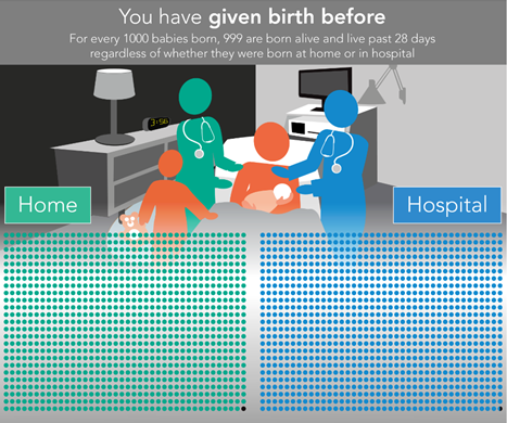 There is excellent Canadian-based research analyzing the records of more than 45,000 low risk births attended by midwives at home and in hospital. The research showed that the same number of babies are born healthy and well regardless of where the birth was planned to take place.