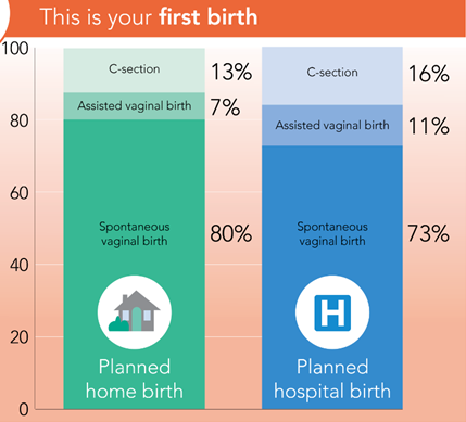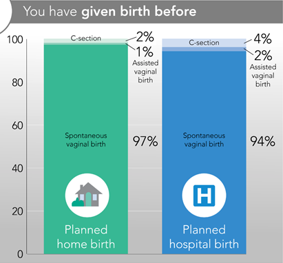 - people who plan to give birth at the hospital have a greater chance of birth interventions like C-section and assisted vaginal delivery (forceps or vacuum) than people who plan to give birth at home